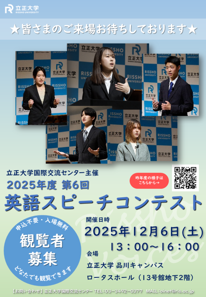 第6回英語スピーチコンテスト -Rissho Voices- 開催のお知らせ