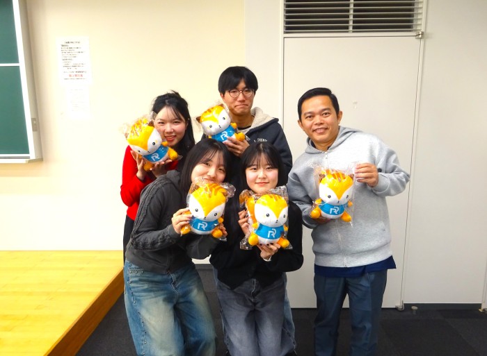 日本語プログラム6名の留学生によるプレゼンテーションの後、留学生には修了証書・記念品、Rismateに修了証書が授与されました。当日は、Rismateのピア・サポート活動において共に活動に参加したの国内学生や学部留学生も一緒に修了をお祝いしました。