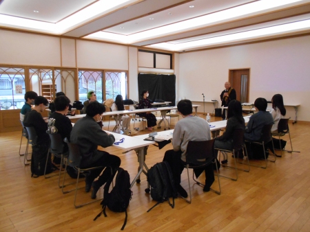 午前の部では、安国論寺住職の平井上人による安国論寺の紹介や、本学文書館事務課職員による「立正大学の歴史」についての講義が行われ、改めて安国論寺や立正大学について理解を深めました。