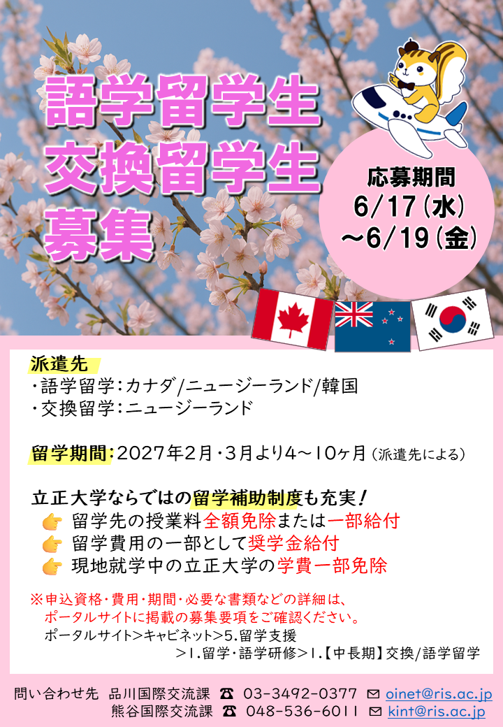 2026年度春留学(交換留学・語学留学)募集のお知らせ